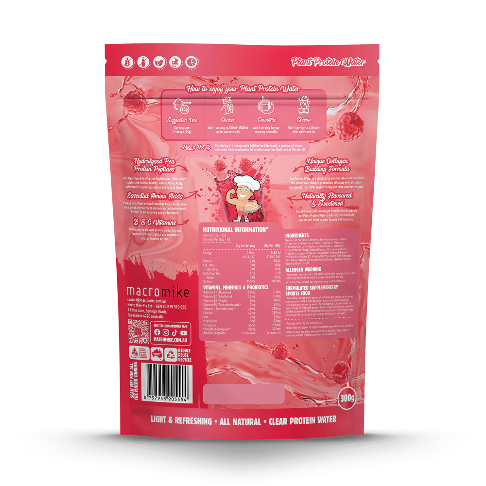Craving a refreshing, light protein option? Macro Mike's Red Raspberry Plant Protein Water is here! Packed with hydrolysed plant protein, collagen-supporting peptides, and essential amino acids, this protein water is designed to support hydration and collagen production with every sip.