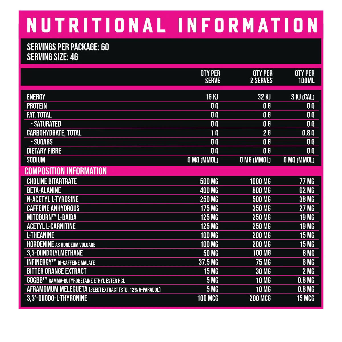 RCN Thermonuke Pink Ops - Nutritional Panel