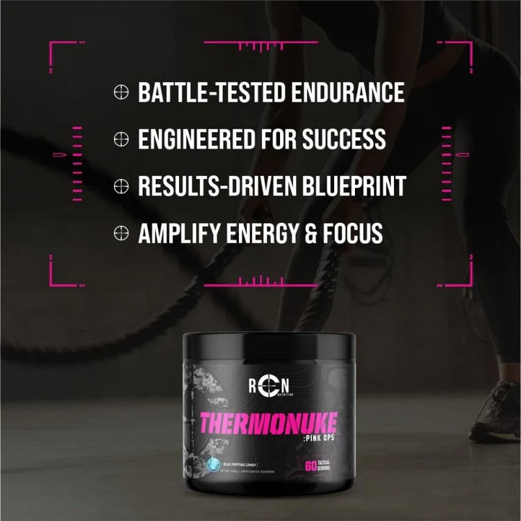 Take a military approach to your body goals with this battle-tested thermogenic by RCN, Thermonuke Pink Ops - designed specifically for women.