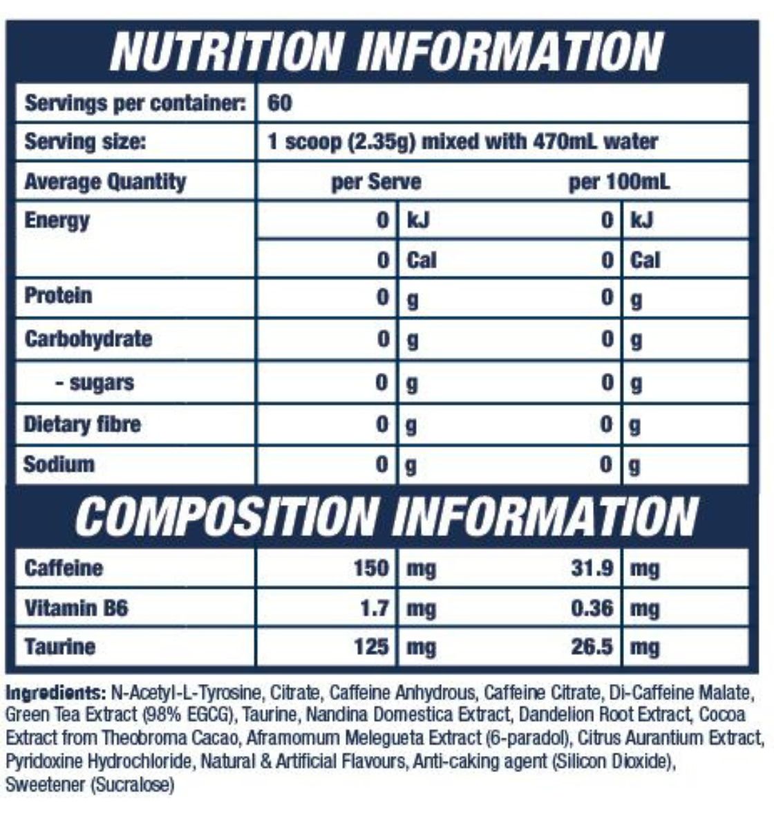 MuscleWerks D-Fine8 Fat Burner Nutrition Information